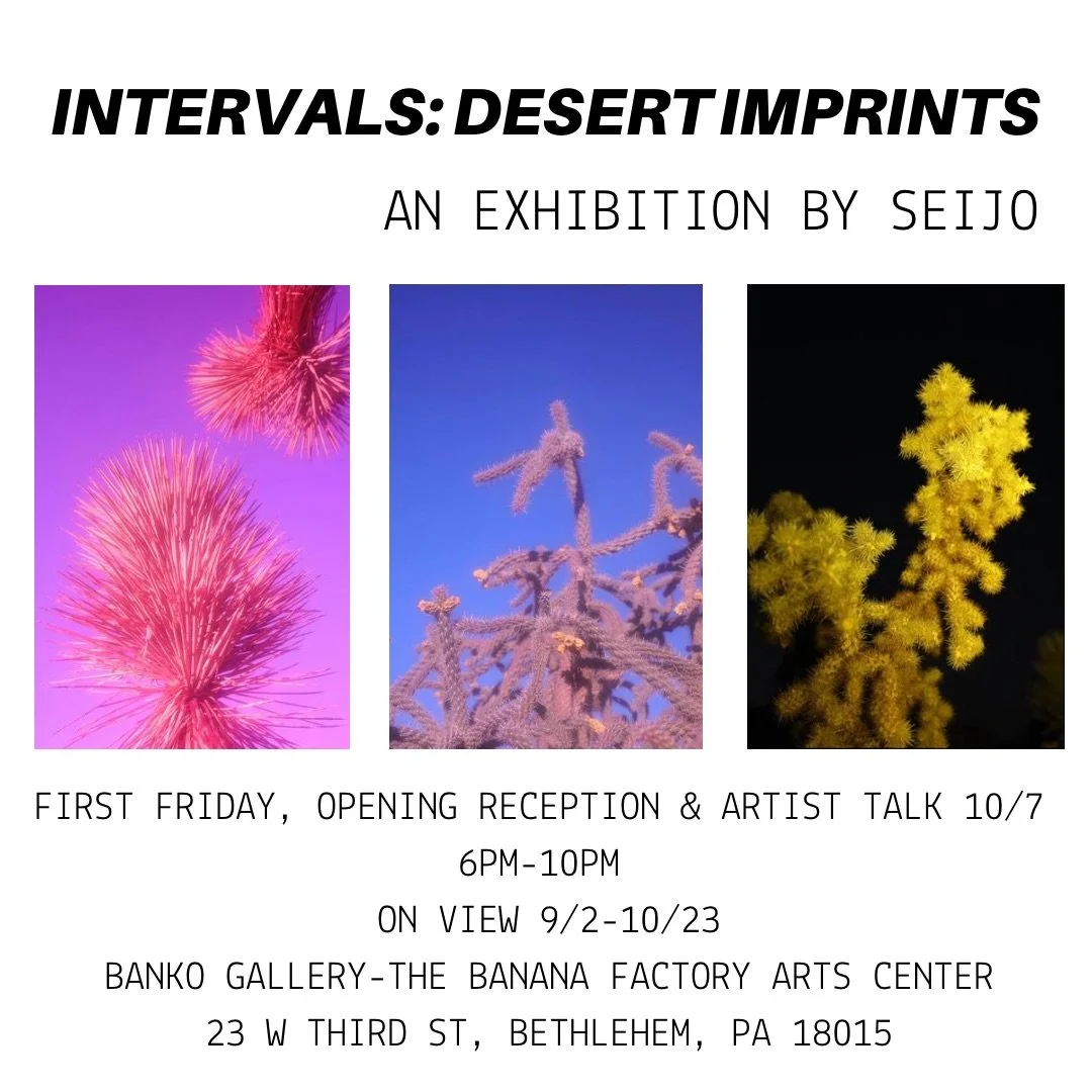 “Intervals: Desert Imprint” offers viewers an opportunity to meditate deeply about time as they experience an installation of photography, video, and cyanotype prints centered around reflection. Through imprints of desert life, brief flashes of light, shadow, the wind, sun and moon, the viewer is invited to share a portion of the eternal moment.